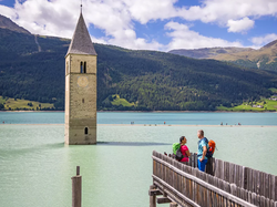 Bewundern Sie die im See versunkene Kirche von Graun auf der Busfahrt nach St. Valentin. Schneebedeckte Berge spiegeln sich im Haidersee, von dessen Ufer Sie hinauf zum Faulersee und über Bergwiesen ins beschauliche Dorf Burgeis gelangen. Über bunte Wiesen und sonnige Berghänge zur Churburg in Schluderns und per Bahn nach Schlanders. Details:ca. 5 Stunden, Entfernung 18km, 450m-850m, Hotelbeispiel: Goldene Rose