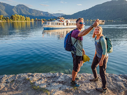 Nach einer kurzen Busfahrt beginnt Ihr Abenteuer Alpenüberquerung in Gmund mit einer ersten halbtägigen Wanderung auf dem ca. 100 Meter oberhalb des Nordufers laufenden Tegernseer Höhenweg bis zum Zwischenziel Tegernsee (Stadt). Traumhafte Ausblicke erwarten Sie auf dieser leichten Einstimmungsetappe - auch ein Besuch des Brauhauses direkt am See darf nicht fehlen. Nach dem kurzen Übersetzen mit der einzigartigen Ruderfähre nach Rottach-Egern wandern Sie am See entlang in Ihren auf der Südseite gelegenen Übernachtungsort Bad Wiessee. Alternativ können Sie die Schifffahrt nutzen, um die Wanderung abzukürzen.