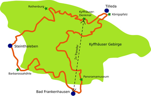 • 1x Transfer vom Kyffhäuserdenkmal zum Hotel (Tag 2) und am Folgetag retour