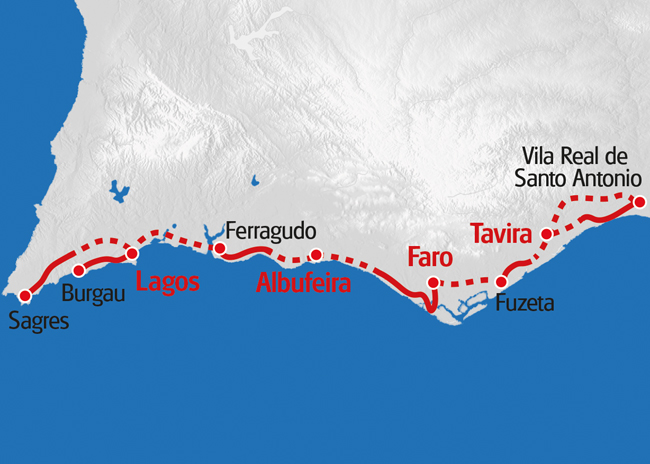 Die malerischen Strände und die herrliche Küstenlandschaft der Algarve entdecken Sie auf dieser Reise in all ihren bunten Facetten: Im Westen erwartet Sie eine wilde Naturlandschaft mit schroffen Steilküsten, imposanten Felsformationen und einzigartigen Kalksteinwänden. Im mediterranen Osten erstrecken sich einsame Strände und endlose Lagunen rund um das Naturschutzgebiet Ria Formosa, ein Paradies für unzählige Vögel und Meerestiere aller Art. Überall können Sie die Traditionen und Gebräuche in den hübschen Fischerdörfern entlang der Küste beobachten, auf den Wanderwegen begegnen Ihnen zahlreiche Blumen und Pflanzen aller Art. Eine perfekte Wandertour für Liebhaber von traumhaften Stränden und unberührter Natur.