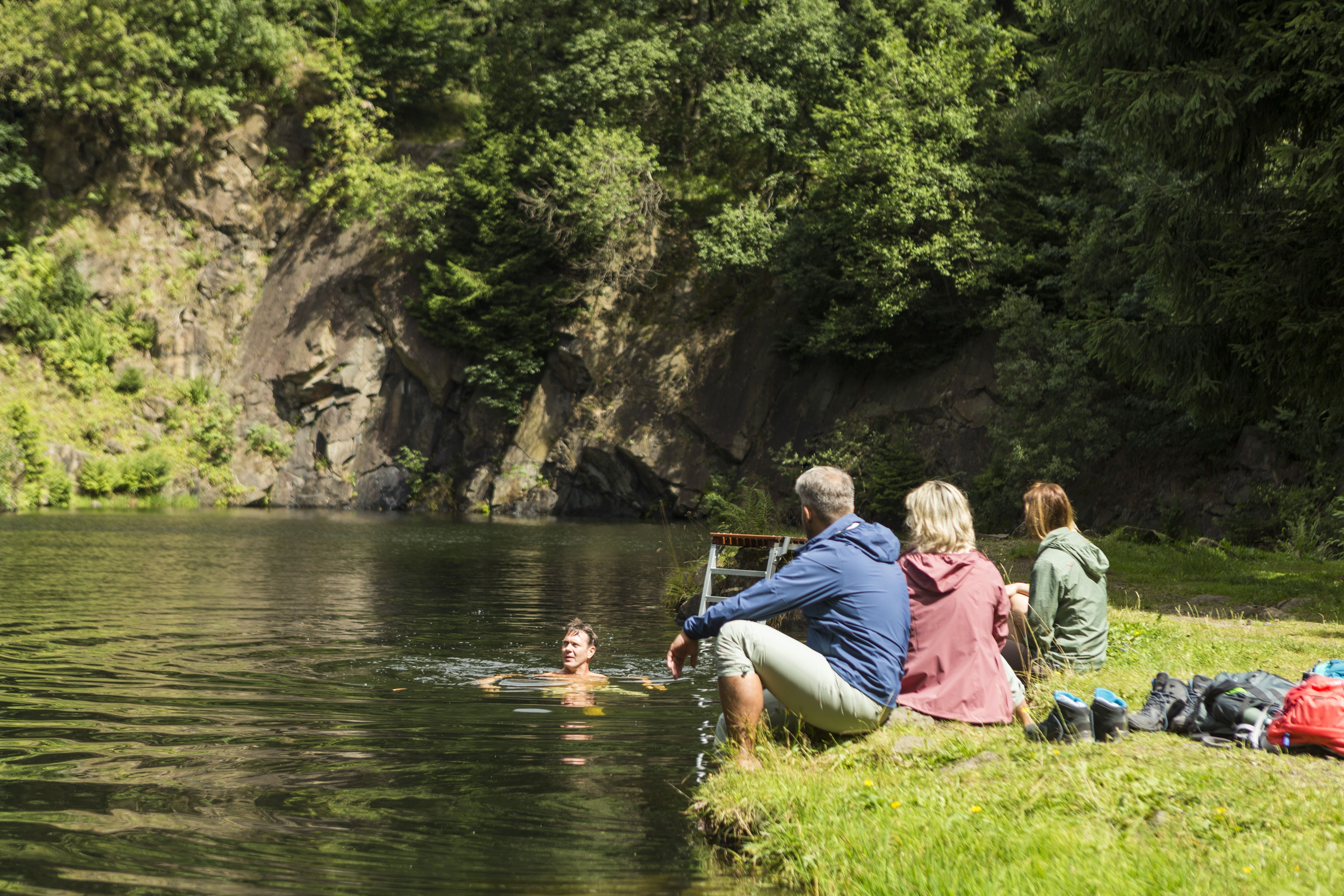 Starten Sie Ihren heutigen Rennsteig-Wandertag in Ascherbrück. Sie wandern oft bergan vorbei am Ruhlaer Häuschen zum Großen Inselsberg, der am höchsten Punkt 912 Meter hoch ist. Für alle Wanderer beginnt nun ein steiler Aufstieg, der mit einem sagenhaften Ausblick belohnt wird. Dieser Rennsteig-Wanderweg ist sehr beliebt und Sie werden wahrscheinlich vielen Wanderern begegnen. Dann geht es bergab zur Grenzwiese, Dreiherrenstein und danach erreichen Sie den Zielort Ebertswiese, eine der schönsten Bergwiesen mit nahe gelegenen Bergseen.