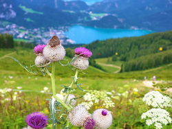 Schweben Sie mühelos auf den Berg bis zum Gipfel des Zwölferhorns. Hier sind Sie 1000m höher als die grünblaue Wasserfläche des Sees. Fantastisch ist der Ausblick bis zum schneebedeckten Dachstein. Der Höhenrundweg und die Almenrunde zum Spitzeck bieten Panoramablicke vom Feinsten. Nach der Einkehr in einer urigen Berghütte gondeln Sie vergnügt ins Tal.